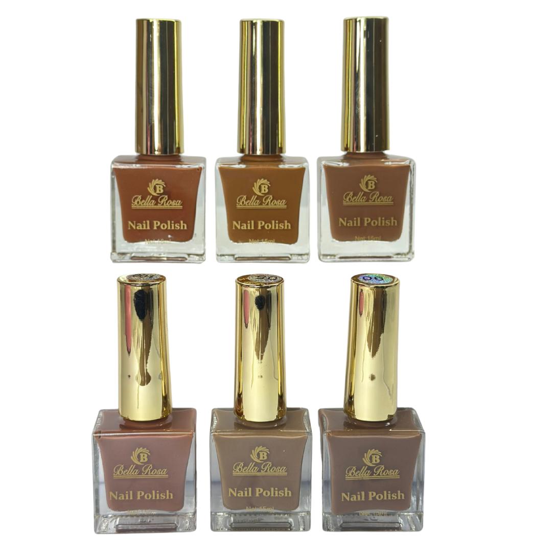 A Coleção 06 Tons Marrons Bella Rosa traz uma seleção perfeita de cores clássicas e elegantes para o dia a dia. São esmaltes tradicionais, de alta cobertura e longa duração, desenvolvidos para quem ama unhas impecáveis com cores versáteis e sofisticadas.