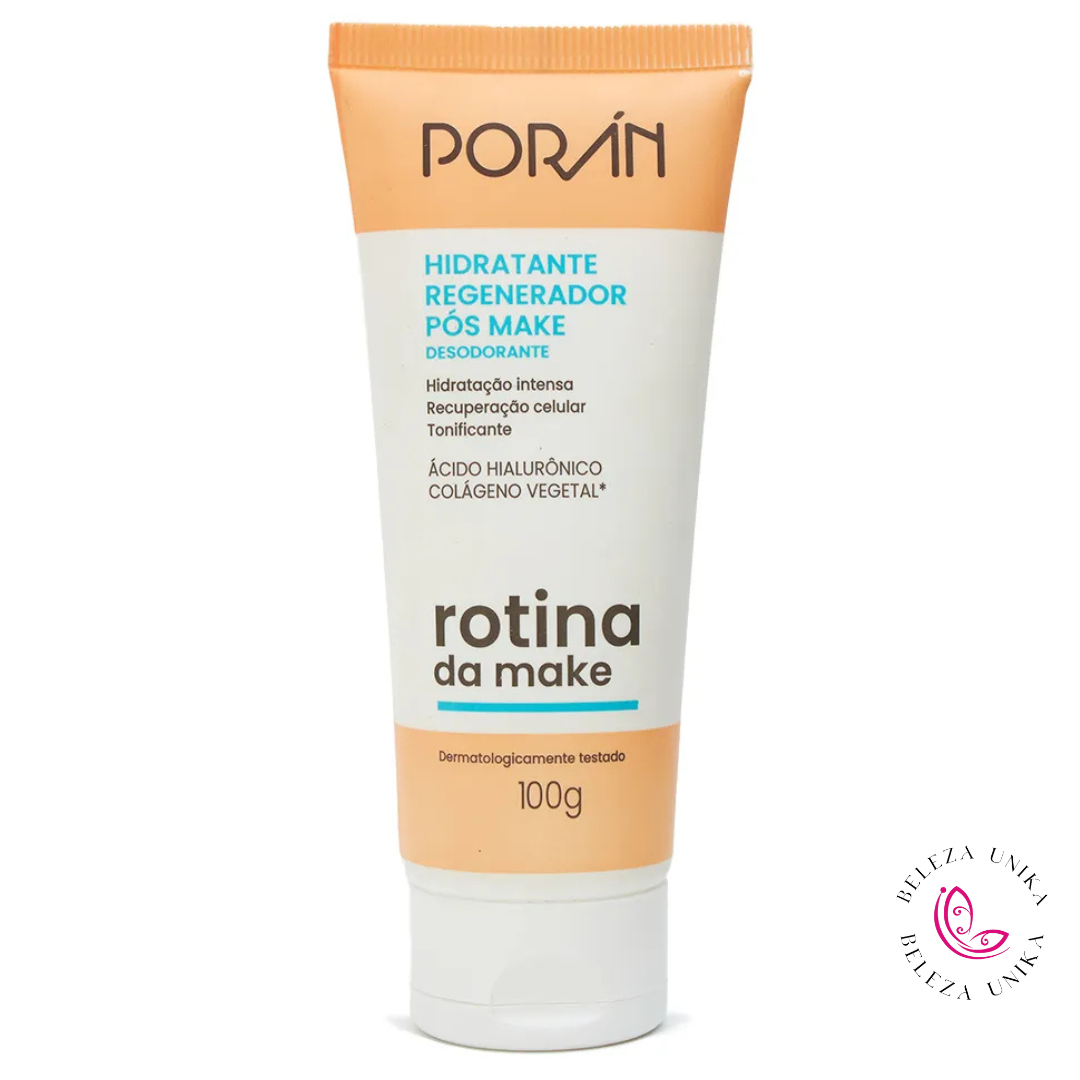 O Hidratante Regenerador Pós Make da Porán é formulado para revitalizar a pele após a maquiagem, proporcionando hidratação intensa e ajudando a restaurar a barreira cutânea.Com ingredientes nutritivos, ele acalma e suaviza a pele, reduzindo a sensação de ressecamento e desconforto.