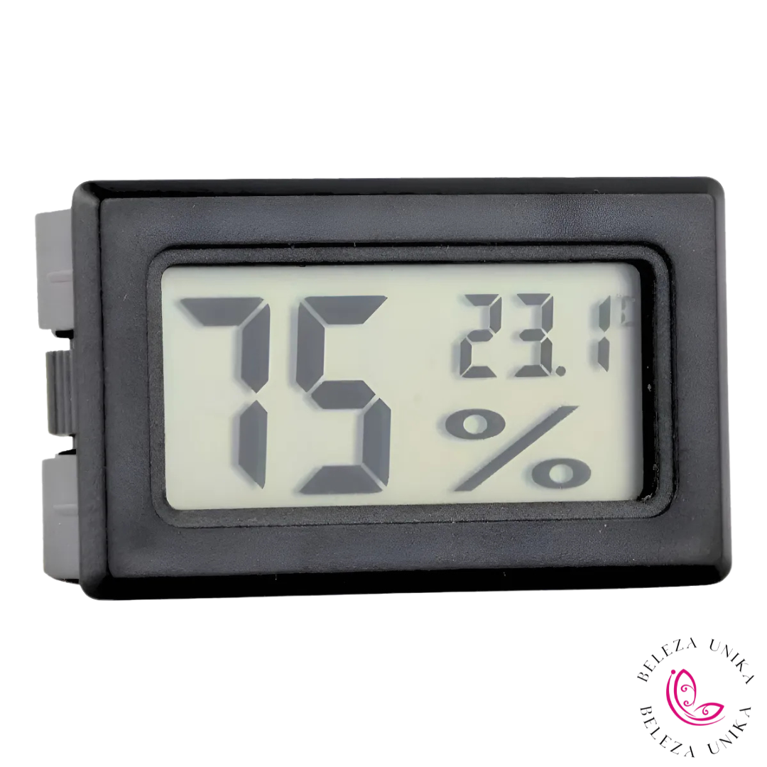 O Higrômetro Digital Preto Pequeno é ideal para monitorar a umidade e a temperatura do ambiente de forma prática e precisa. Compacto e discreto, é perfeito para uso em estúdios de extensão de cílios, salas de estética, ambientes internos e até uso doméstico.