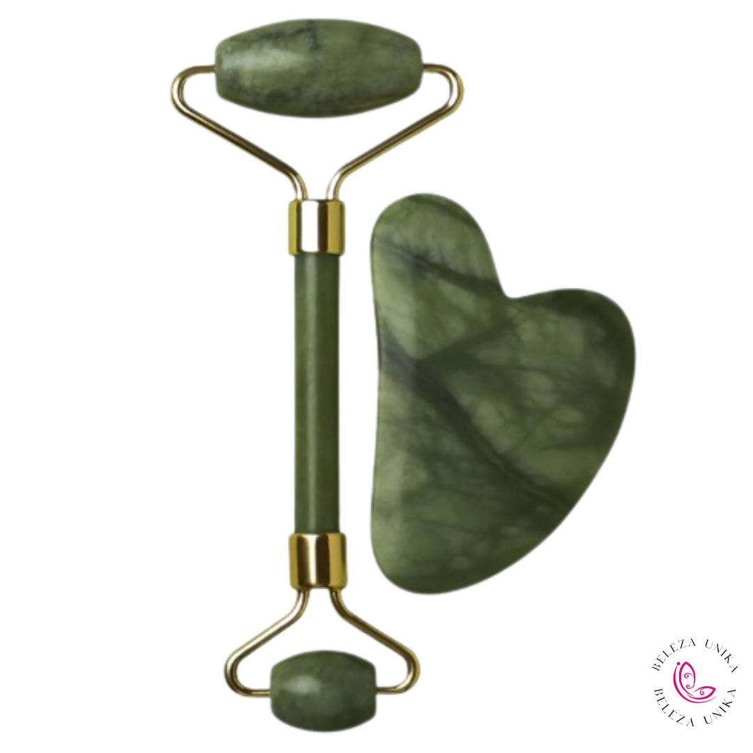 • Auxilia na absorção de cremes e sérunsRevitalize sua rotina de cuidados com a pele com o Massageador Facial Jade Duo, composto por um rolo de pedra jade natural e uma plaquinha gua sha. Juntos, eles promovem uma massagem relaxante e estimulante, ajudando a melhorar a aparência da pele e proporcionando momentos de autocuidado todos os dias.