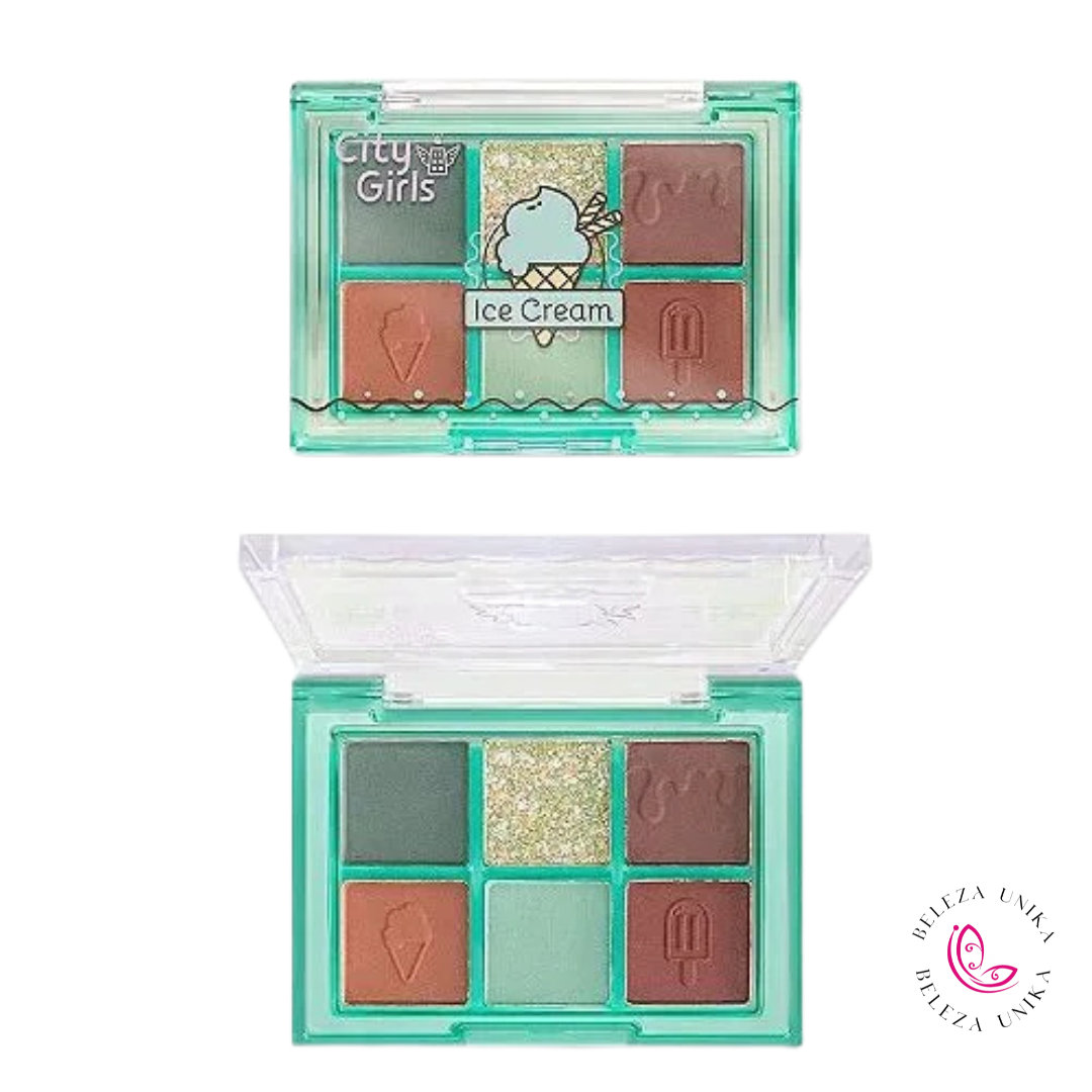 A Paleta de Sombras Ice Cream da City Girls traz uma explosão de cores irresistíveis em tons divertidos e versáteis, perfeitos para criar desde makes delicadas até produções super criativas.