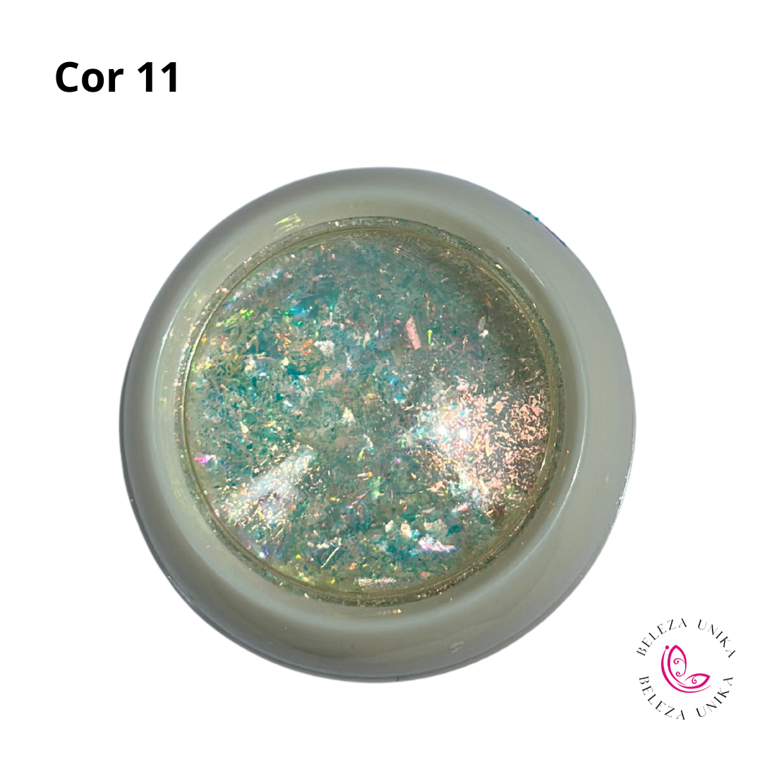 Nosso pó holográfico cria um brilho prismático que reflete diferentes cores conforme a luz, proporcionando um acabamento sofisticado e moderno.